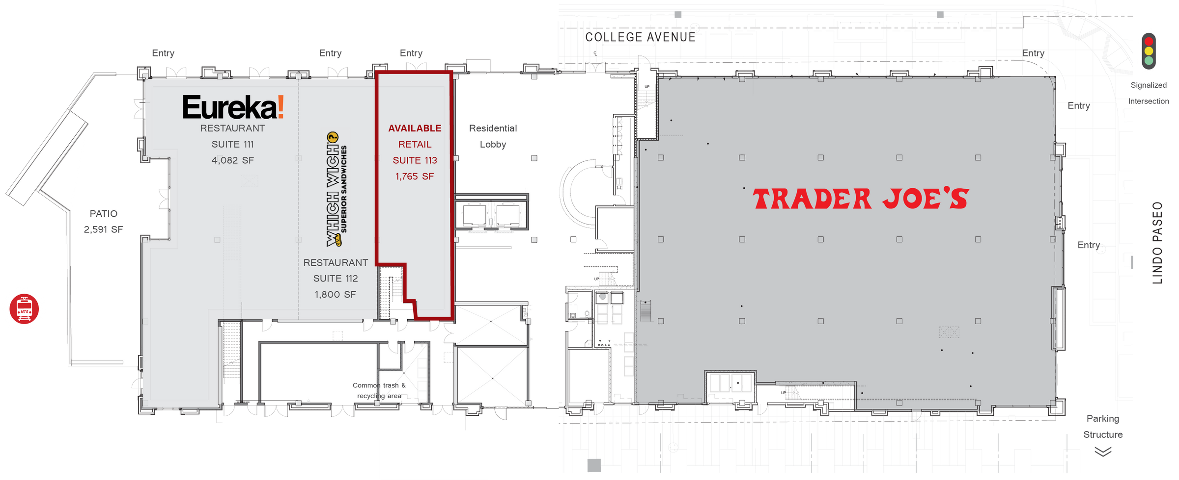 • 280’ of linear frontage along College Avenue with over 100’ linear feet of frontage on Lindo Paseo